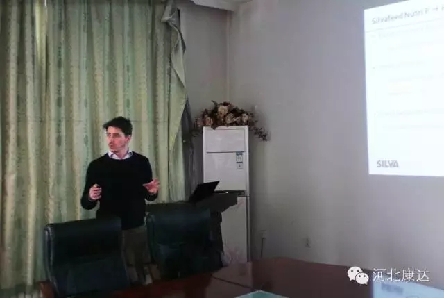 Panciroli在天津市新概念生物技術有限公司總經理郝國強先生和馮奇先生的陪同下,蒞臨河北康達畜禽養殖有限公司舉行講座。公司常務副總經理朝魯先生和公司飼料事業部領導出席接待。 本次Nicola