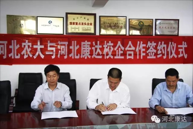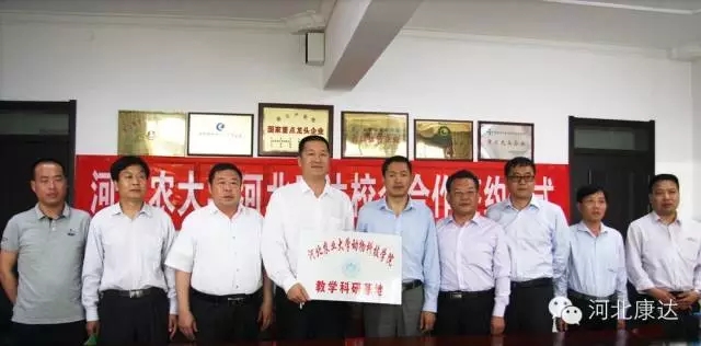 2015年5月5日,河北農業大學動物科技學院與河北農業大學動物醫學院領導蒞臨康達公司,為進一步提高教育教學質量,更好的做好大學畢業生的就業工作,更好的為地方畜牧業發展服務,提高學生的綜合素質和實際工作能力,與我公司經過平等協商,本著院企合作、互利互惠、共同發展的原則,達成了院校為公司提供專業人才、企業為學院畢業生提供實習、就業崗位的合作雙贏的聯合建立教學科研基地的協議。
